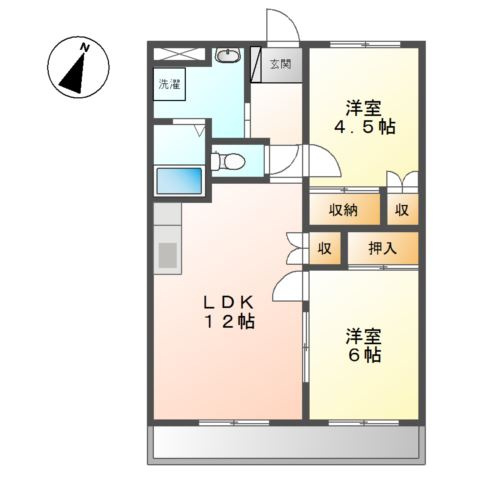 LDK 12.0帖 1室/洋室 6.0帖 1室/洋室 4.5帖 1室 - 向き