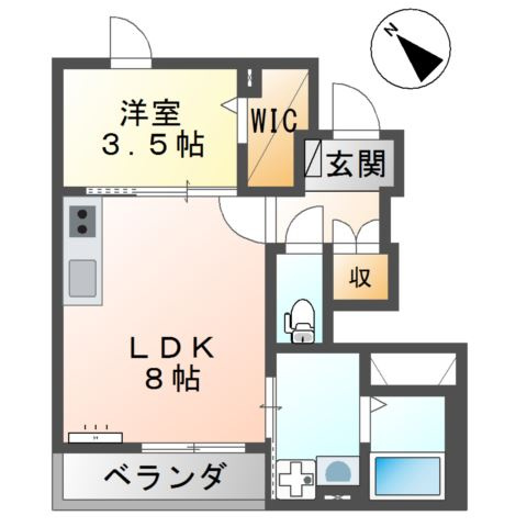 LDK 8.0帖 1室/洋室 3.5帖 1室 - 向き