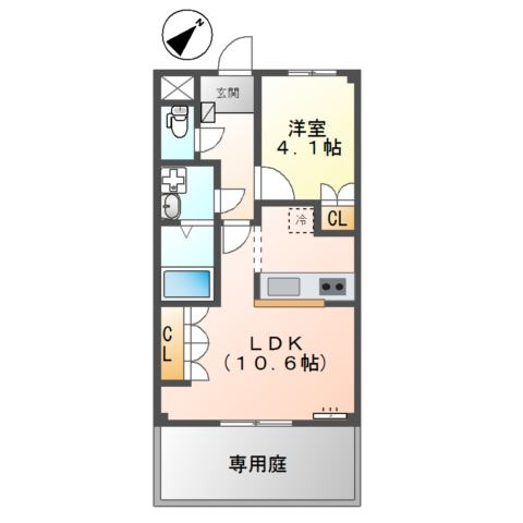 LDK 10.6帖 1室/洋室 4.1帖 1室 - 向き